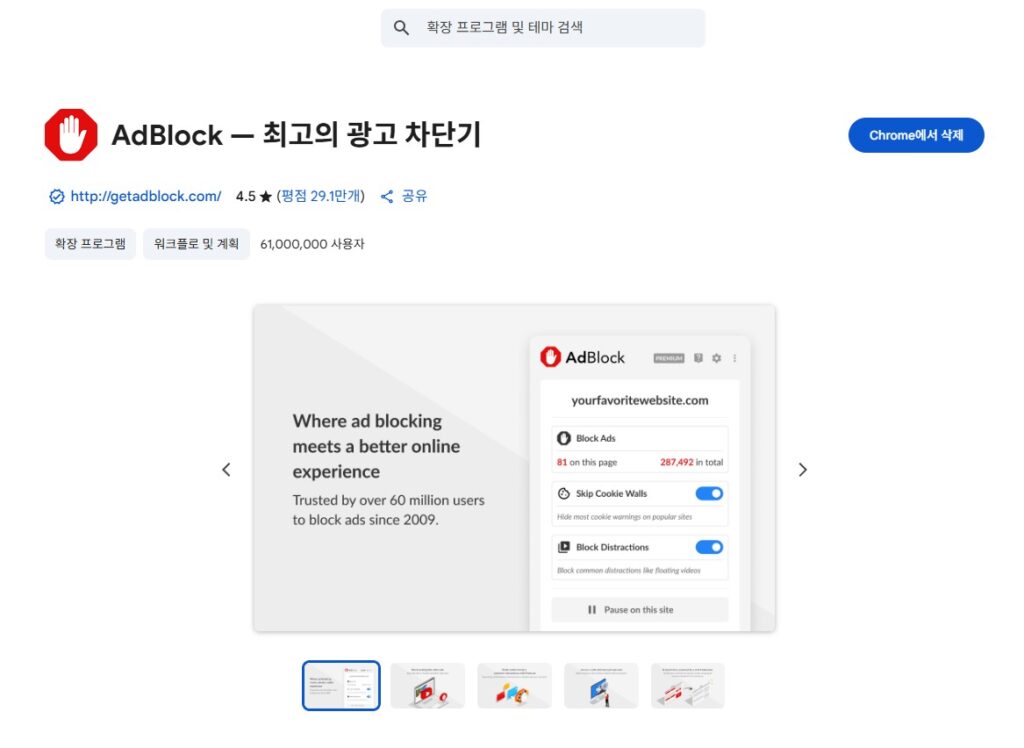 - 일부 사이트는 광고 차단 시 영상 재생이나 기능이 제한될 수 있습니다.