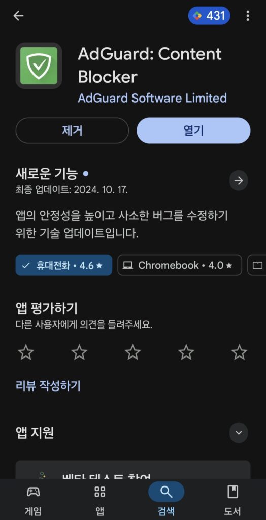 - AdGuard: DNS 방식으로 전체 광고를 걸러주는 앱 (한 번 켜두면 백그라운드에서 작동)