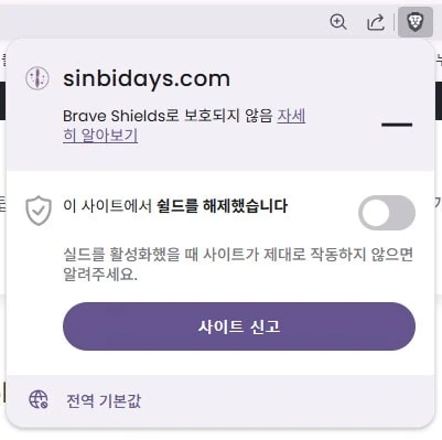 sinbidays.com의 Shields(쉴드)를 해제해주시면 됩니다.