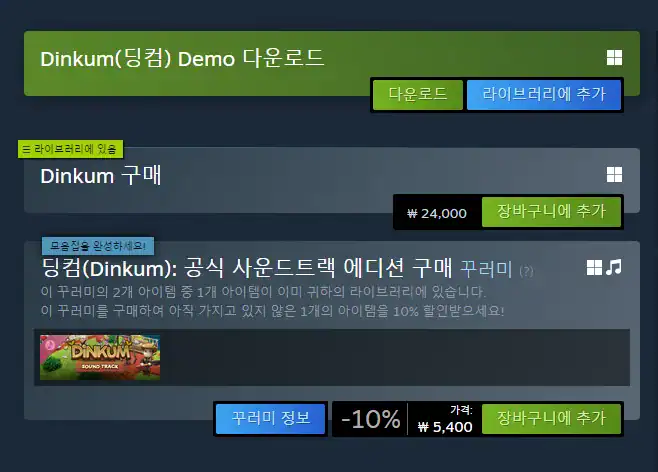 딩컴은 스팀 기준 정가 24,000원대입니다.