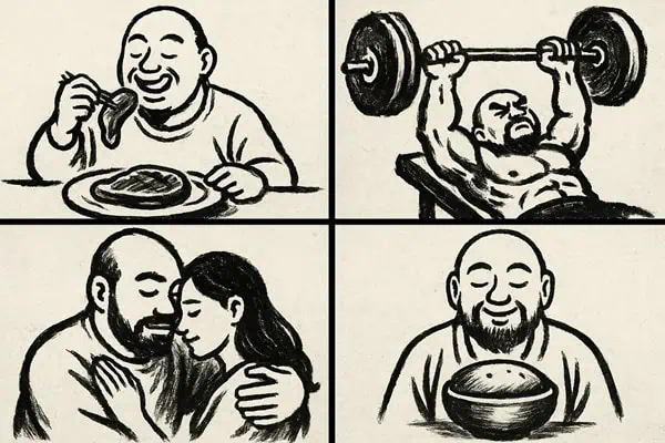 Eat a steak “Wow, this is the best time of my life, I have to come again” and being happy about it.