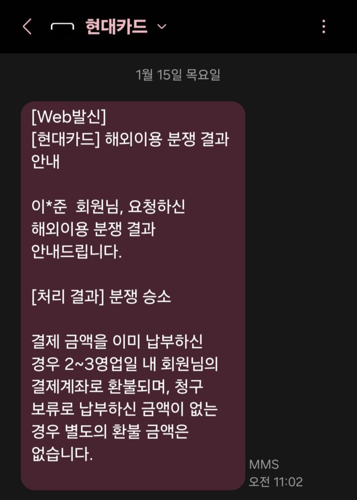 A few days ago, I also got a text saying I won my Hyundai Card dispute 😌💛