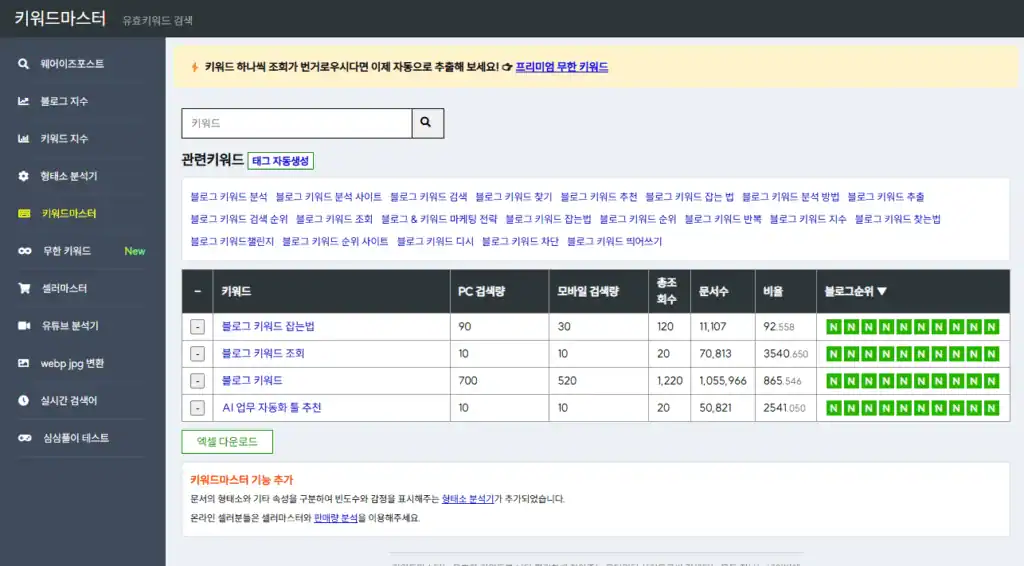 | AI 블로그 자동 글쓰기 | 월 70 검색 |