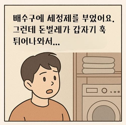 그래서 세탁실 하수구 덮개에 살살 뿌렸는데…